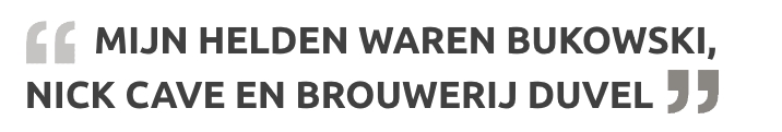 Zo bouwde ik op een gevaarlijk beïnvloedbare leeftijd, en met behulp van een door de maatschappij overal beschikbaar gemaakte drug, een tweede persoonlijkheid op. De constructie die ik ontwierp en waarin ik heel mijn verdere leven zou rondzwerven bestond voornamelijk uit stukken zwijgzaamheid, ironie, cynisme, lust, existentiële twijfels, groteske, dronken uitspattingen en vooral alcohol om de boel mee te stutten. Mijn helden waren Bukowski, de jonge Nick Cave en brouwerij Duvel. Er was niks interessanter, opwindender of zingevender dan je te pletter zuipen.