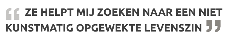 Het leek te simpel om waar te zijn maar het werkte wel. Bij anderen had ik te veel fouten gemaakt, te veel gelogen, te veel vertrouwen geschonden. De diepe schaamte die daaruit voortvloeide weerhield mij ervan om mijn angsten, schuldgevoelens, twijfels en spijt tegenover hen te verwoorden. Enkel bij haar gulpte alles er in oncontroleerbare hoeveelheden uit omdat zij in de positie zat om onbevooroordeeld en niet beoordelend naar mijn biecht te luisteren. Bij haar kwam er geen verwijtende God aan te pas.